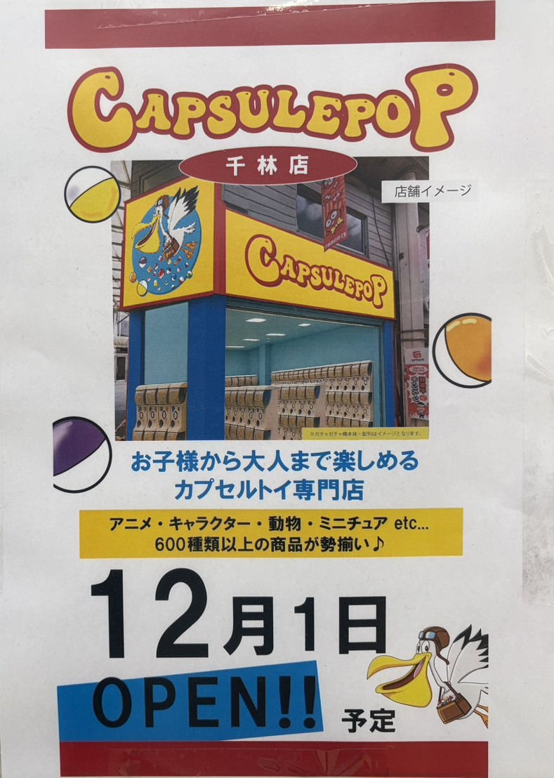 【大阪市旭区】千林商店街に「CAPSULEPOP(カプセルポップ)千林店」がオープン予定!
