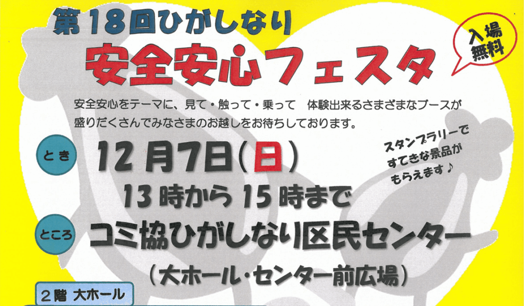 【大阪市東成区】第18回ひがしなり安全安心フェスタ開催|入場無料!