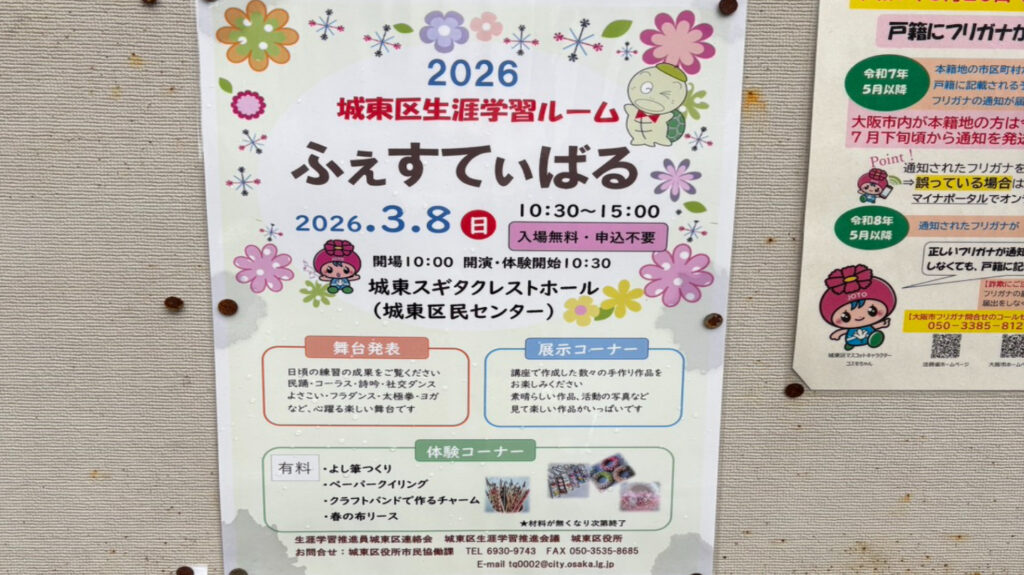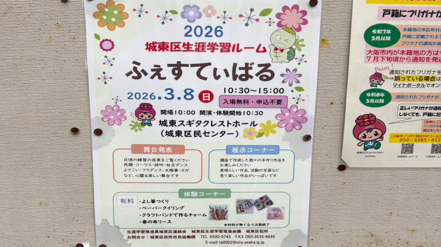 【大阪市城東区】「城東区生涯学習ルームふぇすてぃばる」が区民センターで開催