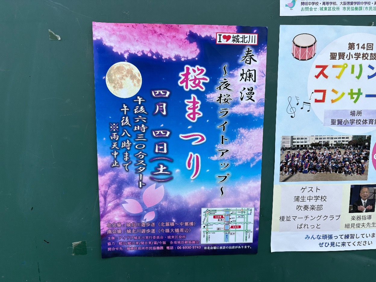 【大阪市城東区】城北川で桜まつりが開催|夜桜ライトアップが2会場で実施