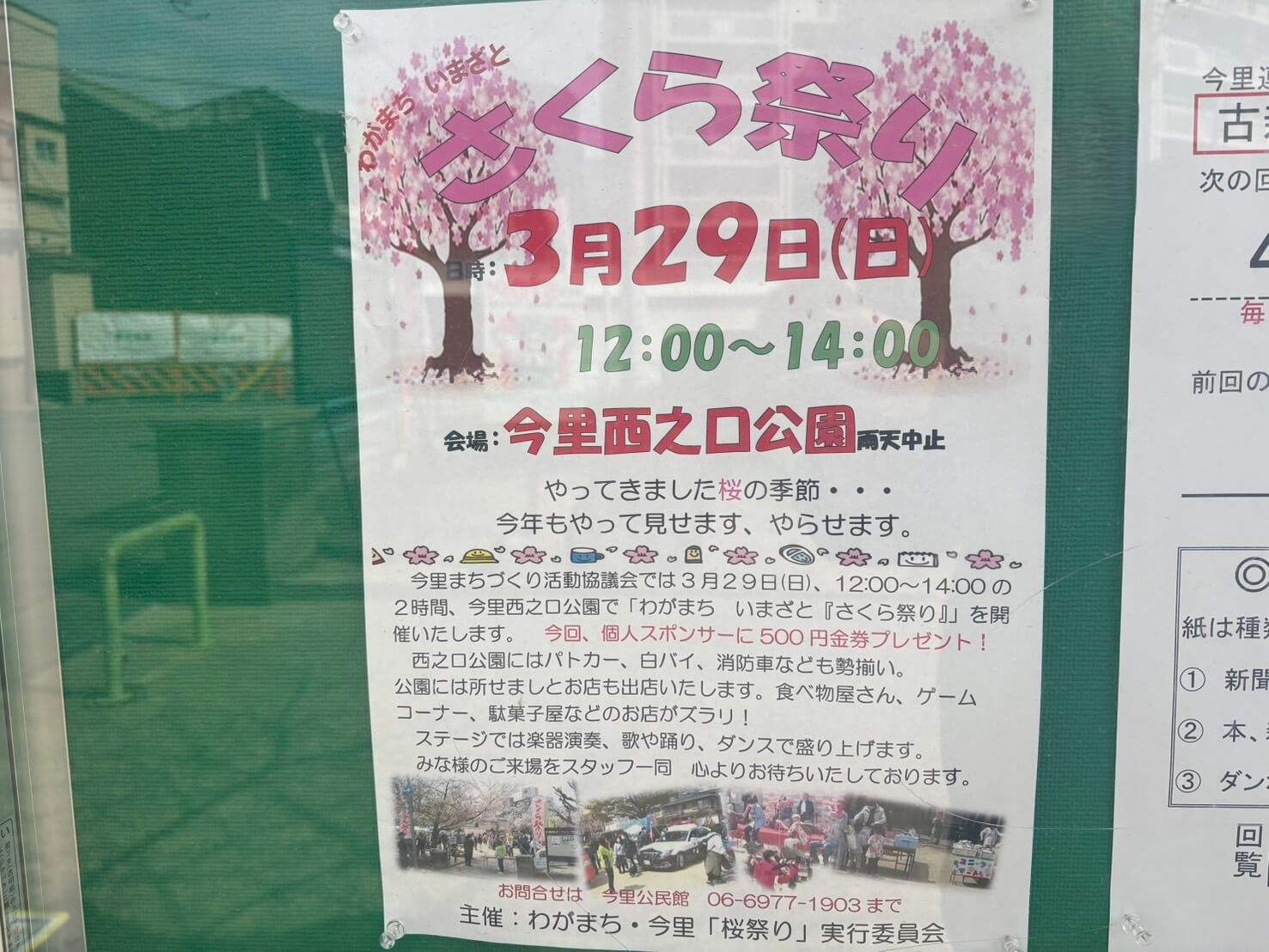 【大阪市東成区】今里西之口公園で「さくら祭り」3月29日開催|屋台やステージ、車両展示も