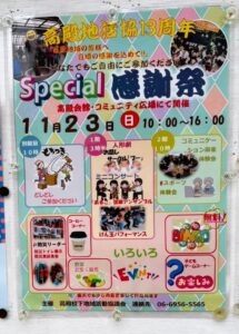 2025年11月16日(日)午前10時30分から午後3時まで高殿会館&高殿コミュニティ広場で「第9回みんなのおまつり」が開催されます。