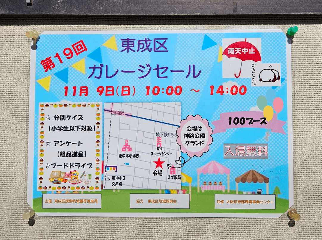 大阪市東成区の神路公園グランドで「第19回東成区ガレージセール」が開催されます。