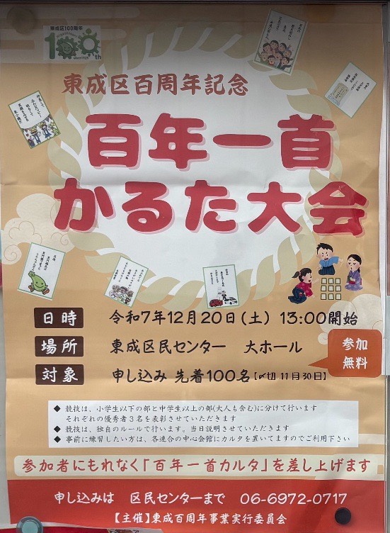 【大阪市東成区】100周年記念イベントのひとつ「百年一首かるた大会」が開催|オリジナルかるたで東成の歴史を体感しよう
