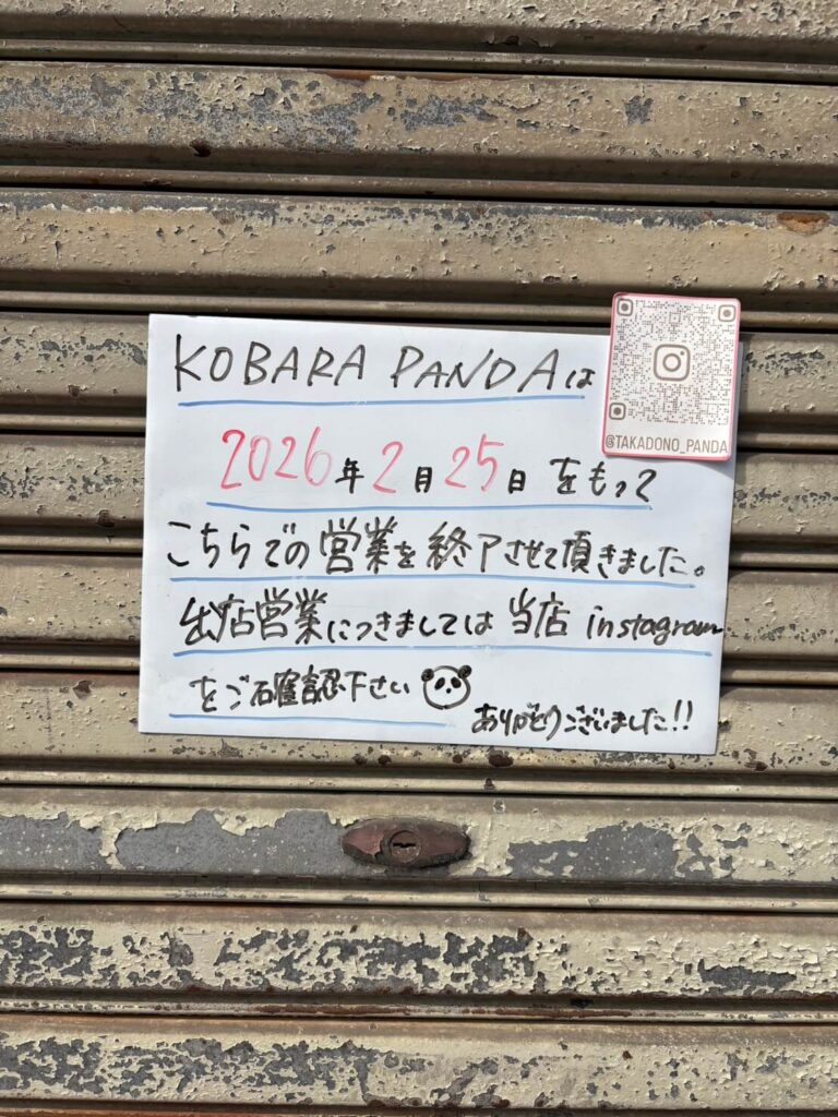 【大阪市旭区】高殿6丁目の軽食カフェ「KOBARA PANDA」が閉店|現地で営業終了を確認
