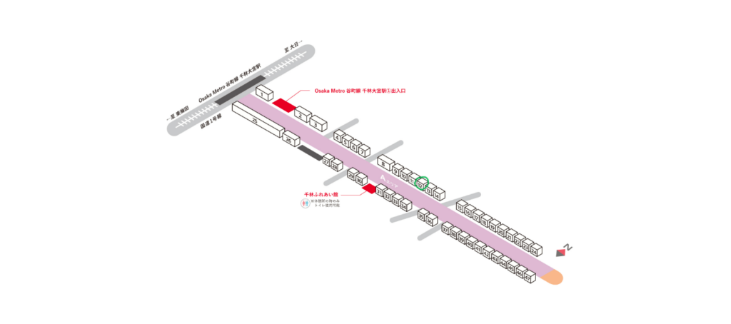 場所は千林商店街の中ほど、マップ12番の位置にお店はあります。