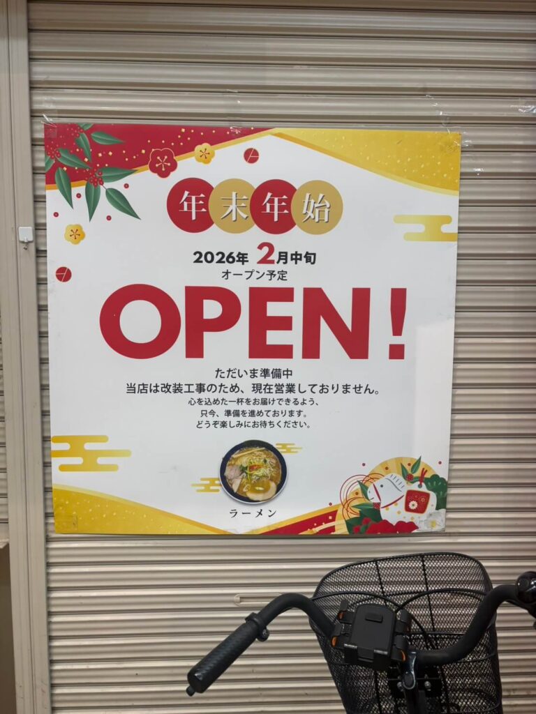 現在は改装工事のため休業中で、店頭の案内によると2026年2月中旬にオープン予定とのこと。