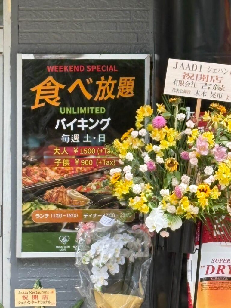 現地では開店祝いの花が並んでおり、オープンして間もない様子でした。