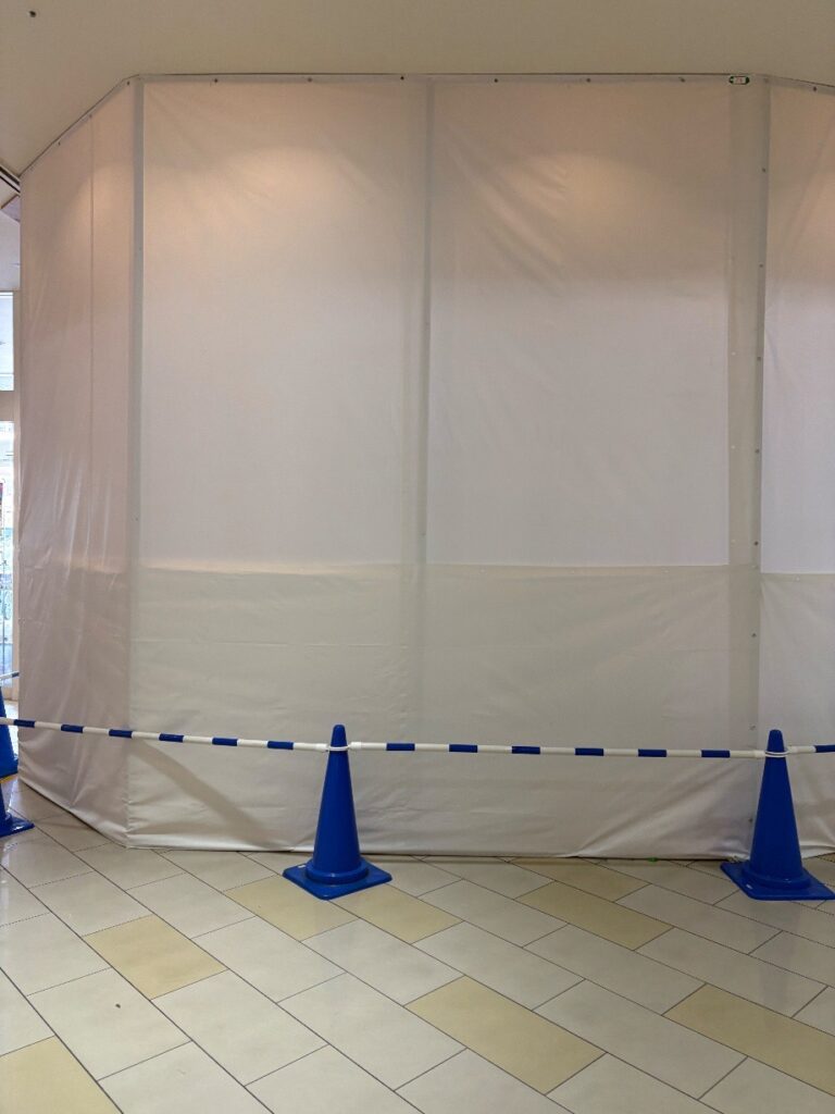 そして2026年3月21日に再度確認したところ、店舗はすでに白い幕で覆われた仮囲い状態となっており、営業していた様子はなくなっていました。