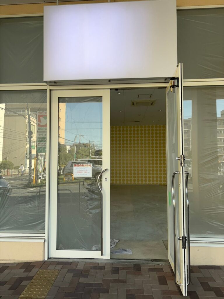 現地を訪れてみると、店舗はすでに営業を終了しており、ガラス面は養生され、内装もほぼ撤去された状態に。