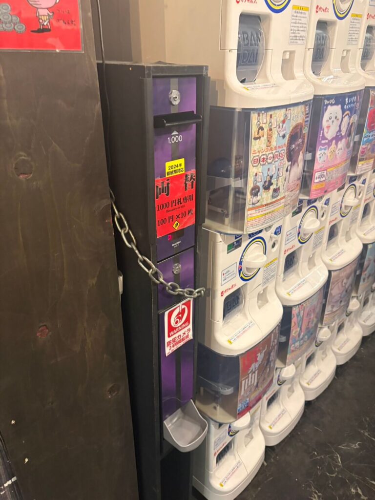 そしてうれしいのが、店内に両替機が完備されていること。ガチャを回そうと思ったら小銭が足りない…というあるあるもその場で解決できます。