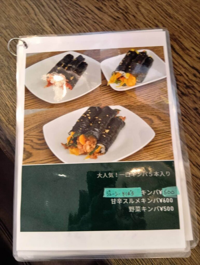 店内案内やスタッフさんのお話によると、キンパやヤンニョムチキン、タコの唐揚げ、定番のから揚げやコロッケ、フライドポテトなど、しっかり食べたい人向けのメニューも揃っているそうです。