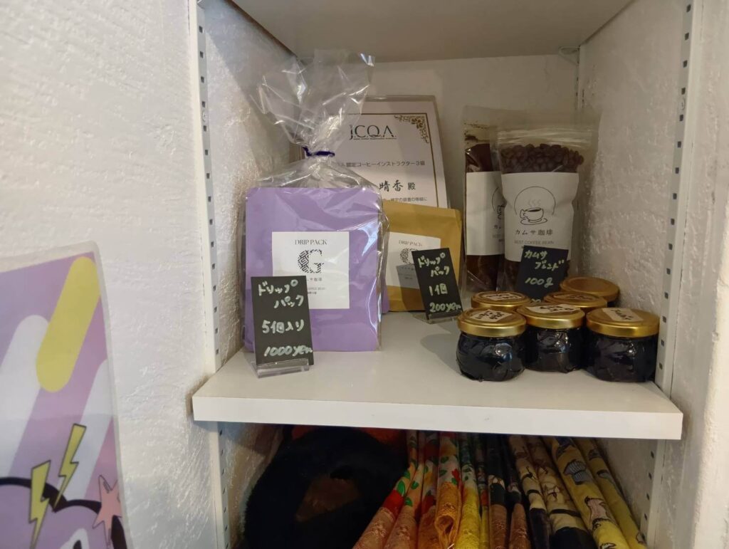オリジナルブレンドのコーヒー豆やドリップパック、さらに香りが楽しめる紅茶も数種類販売されており、自宅用やちょっとした手土産にも良さそうでした。