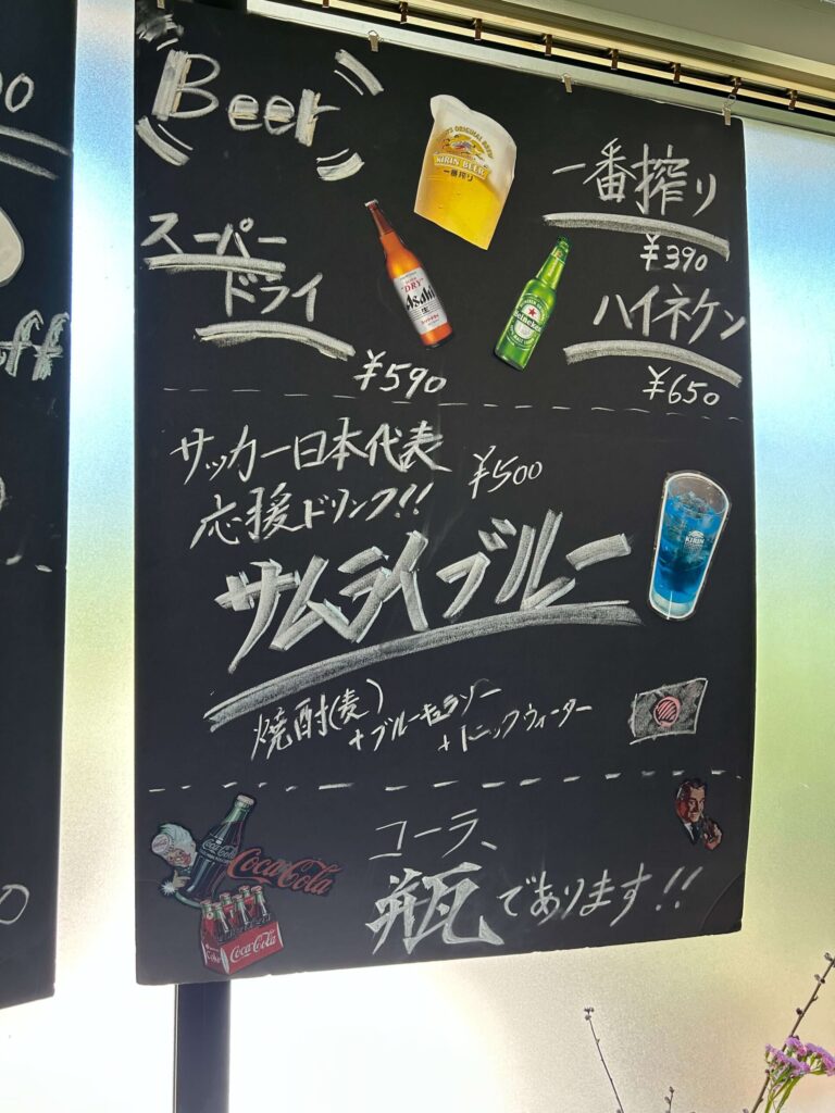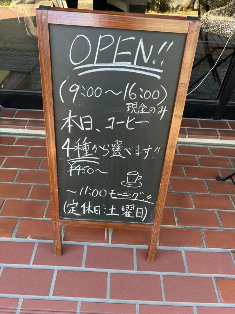 入口には営業時間やメニューが書かれた黒板が出ており、初めてでも利用しやすい印象でした。
