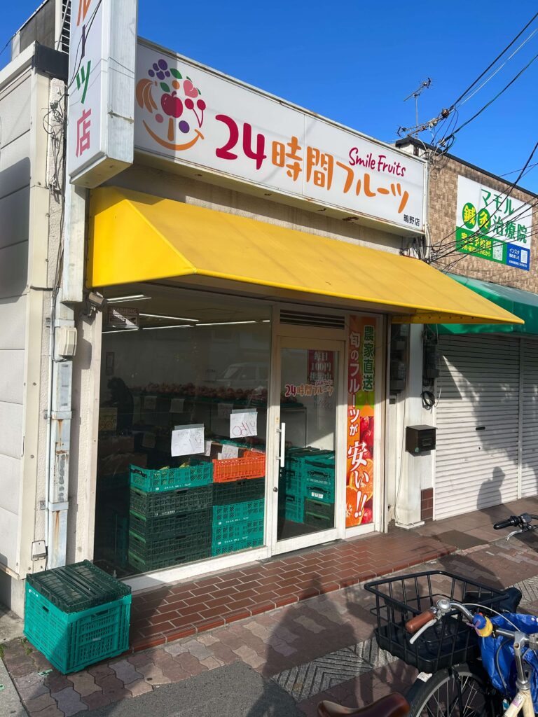JR鴫野駅から南へ歩いて3分ほどの場所にある、無人販売店「24時間フルーツ鴫野店」をのぞいてきました。