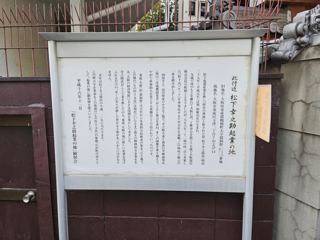 東成区に住んでいても意外と知らない方は多い名所です。てことで、今回は、経営の神様のパワーにあやかろうと「松下幸之助起業の地」を訪れてきました。