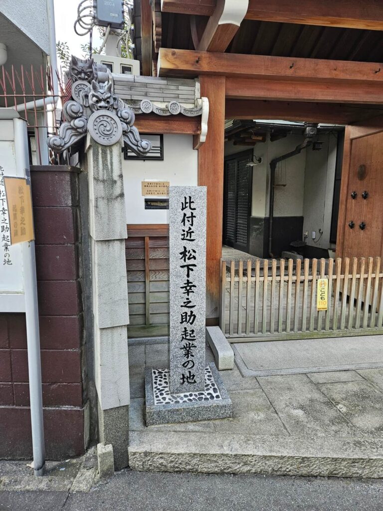 伝正院門前にある石碑に「松下幸之助起業の地」と刻まれています。